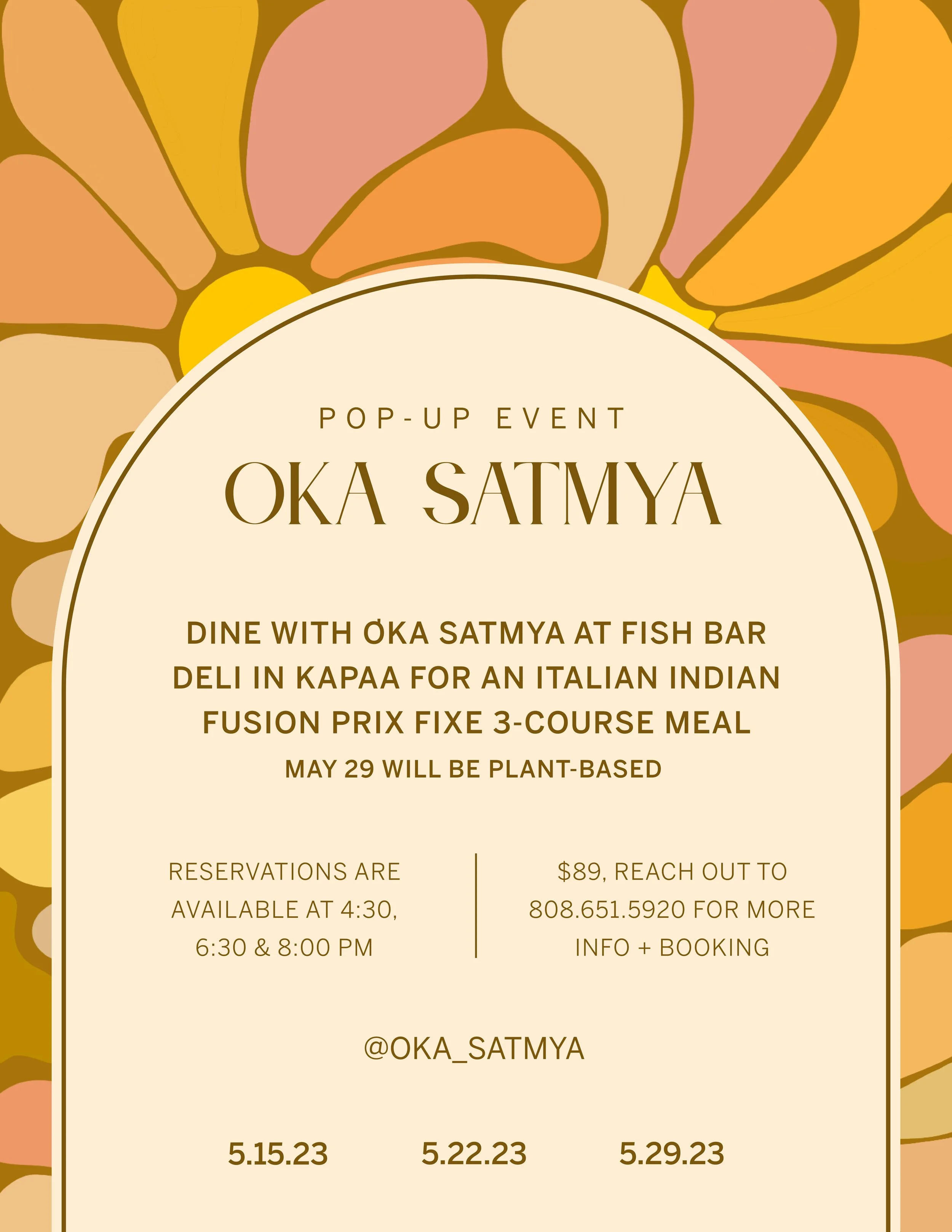 Designed and promoted Oka Satmya (a local catering company) pop-up on Kauai. I was also hired to photograph the event.